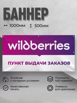 Баннер, вывеска «Wildberries» для ПВЗ 100x50 см