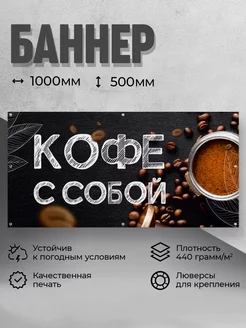 Рекламный баннер, вывеска "Кофе с собой" 100x50 см