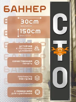 Рекламный баннер, вывеска "СТО" 30x150 см