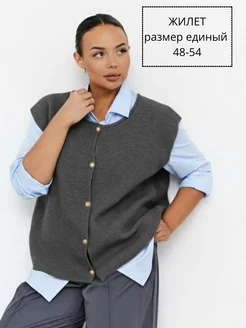 Жилетка вязаная трикотажная на пуговицах больших размеров