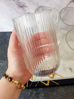 Стаканы высокие стеклянные набор рифленые 6 шт