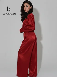 Пижама со штанами и рубашкой домашняя атласная леопард