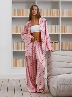 Пижама со штанами и рубашкой домашняя сердечки
