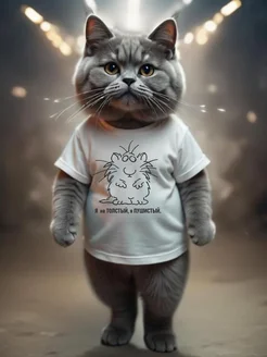 Футболка белая с принтом Я не толстый, я пушистый