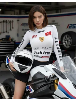 Лонгслив облегающий с принтом мото y2k