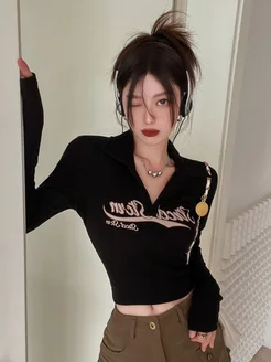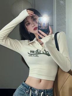Ретро кроп топ поло с длинным рукавом Y2K