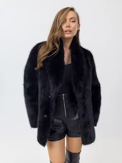 Шуба с капюшоном оверсайз под норку(иск.мех)