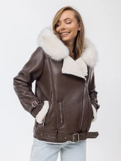 Кожаная дубленка косуха с капюшоном (эко-кожа)