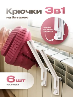 Крючки на батарею сушилка для обуви и одежды, набор 6 шт