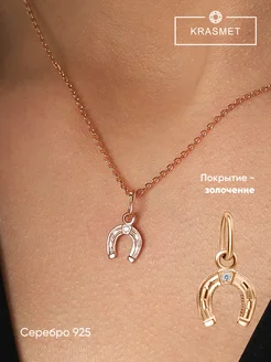 Подвеска серебро 925 позолоченная подкова с фианитом