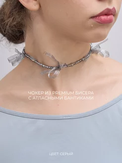Чокер из серого бисера с атласными бантиками