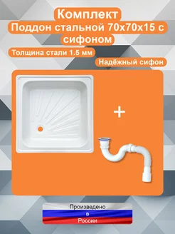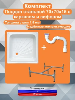 Комплект поддон душевой 70х70х15 с каркасом и сифоном