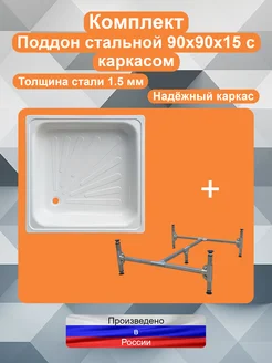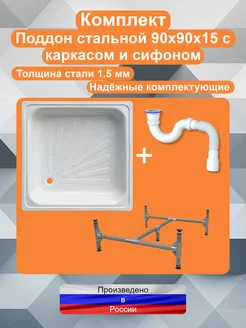 Комплект поддон душевой 90х90х15 с каркасом и сифоном