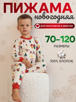 Пижама детская со штанами новогодняя хлопок