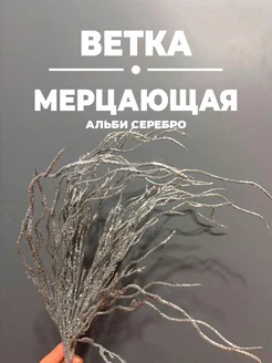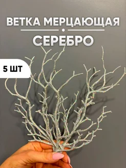 Искусственная зелень, веточки "Мерцающее серебро" 5 шт