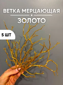 Искусственная зелень, веточки "Мерцающее золото" 5 шт