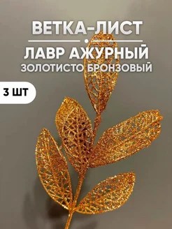Ветка-лист "Лавр ажурный" золотисто-бронзовый (3 шт)