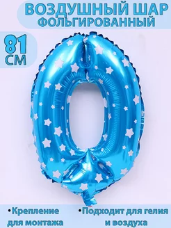 Шар фольгированный голубой цифра 0