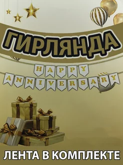 Растяжка гирлянда бумажная на стену "Happy Anniversary"