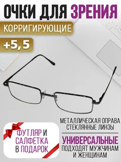 Очки для зрения со стеклянными линзами (золото) +5.00