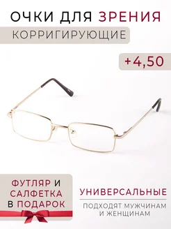 Очки для зрения со стеклянными линзами (золото) +4.50