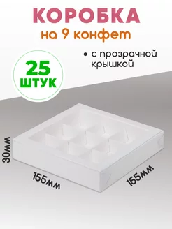 Коробки для 9 конфет с окном и ячейками с разделителем