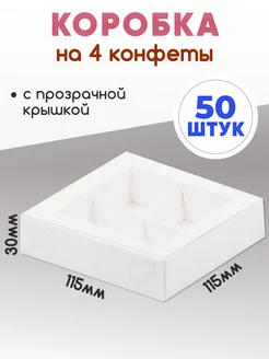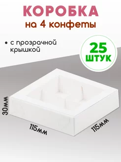 Коробка для конфет с ячейками 4 с разделителями и крышкой