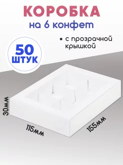 Коробки для конфет на 6 ячеек с окном и разделителями