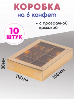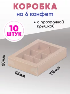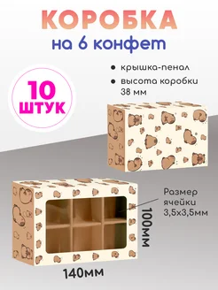 Картонная коробка для 6 конфет с разделителями и окном