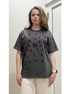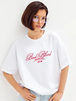 футболка оверсайз с принтом y2k удлиненная
