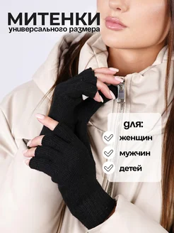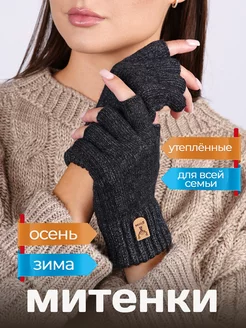 Перчатки женские без пальцев митенки теплые для всей семьи