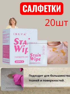 Салфетки от пятен на одежде влажные пятновыводящие 20шт