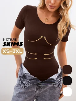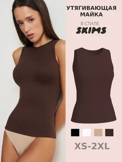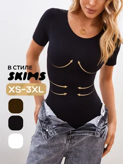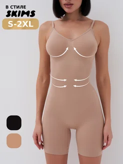 Утягивающее боди с шортами майка на бретельках скимс skims