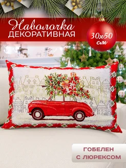 Наволочка новогодняя гобеленовая Красная машина 30х50 см