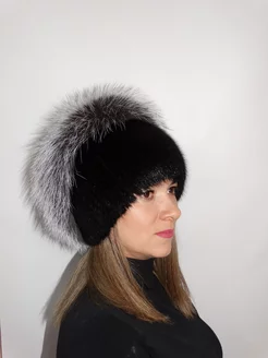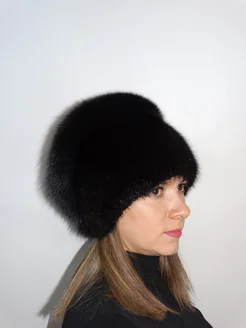 Шапка меховая женская "Спиралька" с брошкой чернобурка