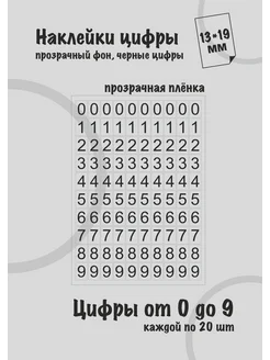 Наклейки цифры черные от 0 до 9, прозрачный фон 13*19мм