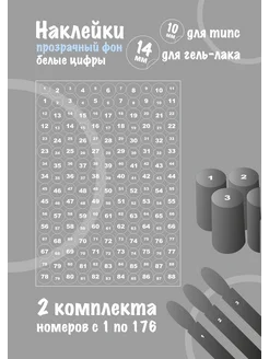 Наклейки прозрачные с номерами от 1 до 176, белые цифры