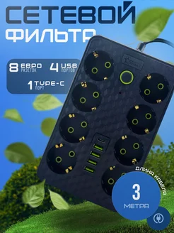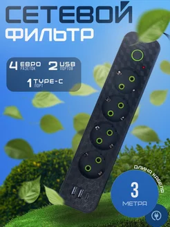 Удлинитель сетевой с USB и Type-С переноска электрическая