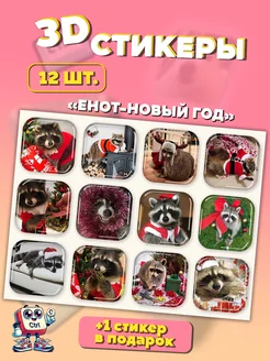 3d Стикеры на телефон Енот-новый год