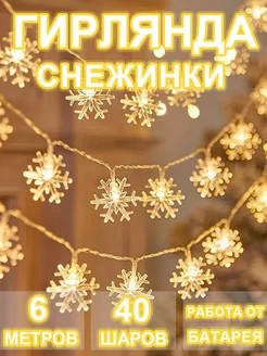 Гирлянда снежинки на новогодняя декоративная 6 метра