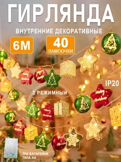 Гирлянда батарейках теплая в комнату декоративная 6м