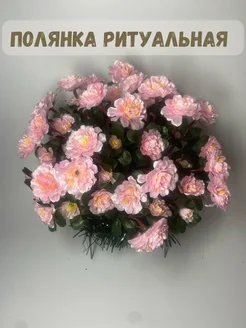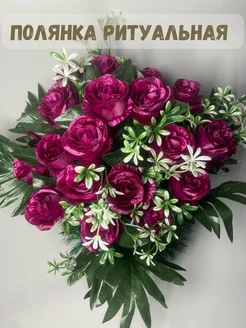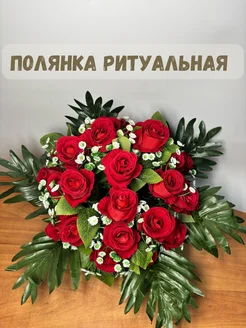 Ритуальная поляна-корзина с бархатными розами на кладбище