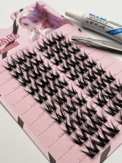 Накладные ресницы пучки с клеем и пинцетом 9-13 мм