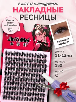 Накладные ресницы пучки с клеем и пинцетом 11-13 мм