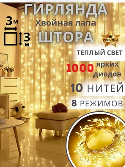 Гирлянда штора хвойная лапа мишура 3х3 на окно