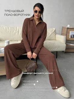 Трикотажный костюм с брюками осенний оверсайз