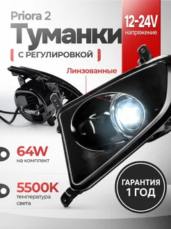 Противотуманные фары с линзой 64 Ватт Приора 2