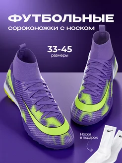Бутсы футбольные сороконожки с носком для футзала и газона