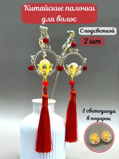 Китайская палочка для волос набор 2 шт с подсветкой