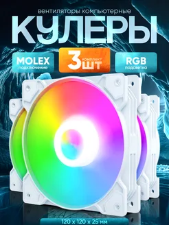 Кулера для корпуса 3шт Белый 120мм с RGB, Вентиляторы для ПК